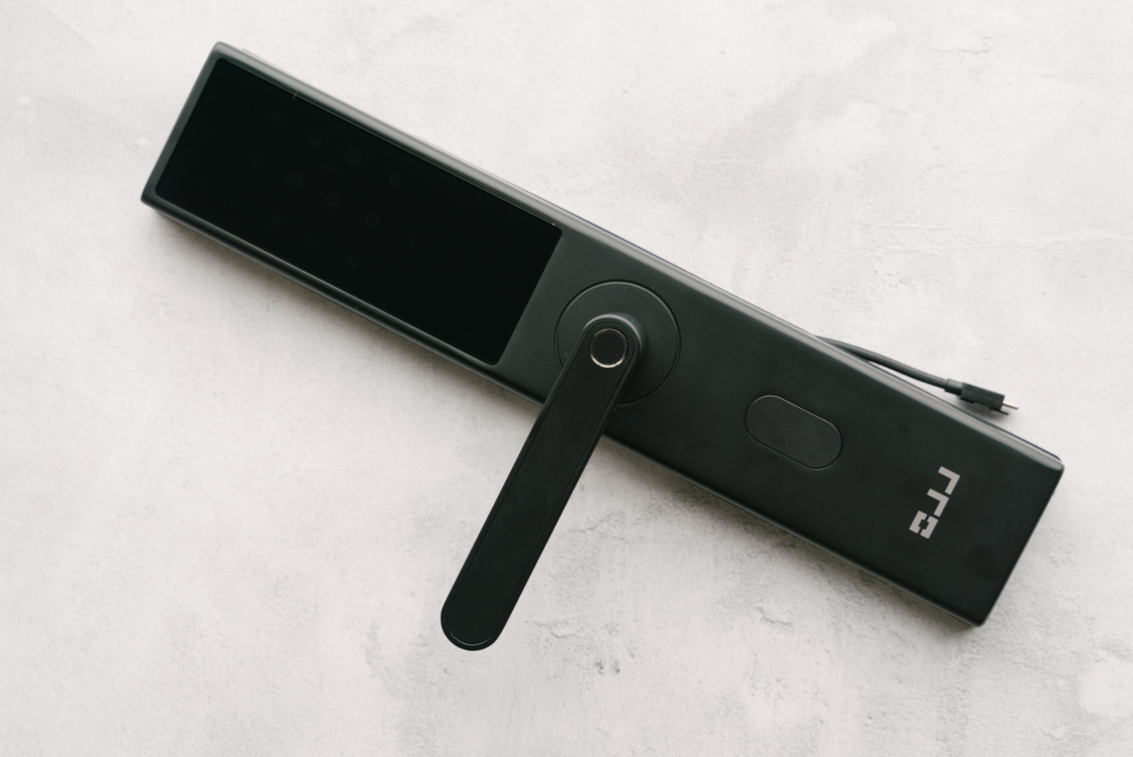 下層則為智能鎖本體了,OJJ本身就為設計師品牌,顏值相當可以,純黑色的面板設計,通體啞光噴漆設計。它的主體材料為鋁合金材質,堅固耐用,并且據官方的說法,它可以經受住96小時鹽霧實驗,即使在沿海地區,外觀也絕不氧化,實驗室中的數據它可以抵御-25℃到55℃極寒極高溫考驗。而門把手采用了耐用的德國雙軸承結構,十年手把不會下垂,在品質上值得信賴。