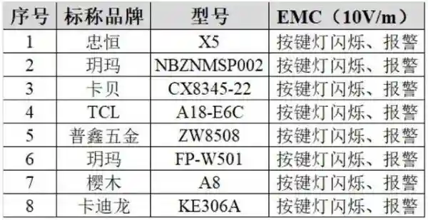 經測試,38把智能門鎖樣品中,8把樣品電磁兼容試驗存在異常反應,但均未出現意外解鎖的情況,將干擾停止后門鎖恢復正常工作。