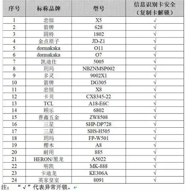 測試結果顯示,現階段,大多數智能門鎖用的IC卡加密機制比較差,很容易通過手機或者電腦破解并復制,造成風險隱患。在破解階段,26把采用IC卡的智能門鎖樣品中,有24把樣品的IC卡可被破解、復制。其中,一把樣品暫未被破解(果加牌,型號:F0)。只有頂固牌型號為SF3100的智能門鎖樣品未被復制卡解鎖。其中利用IC卡序列號及校驗位制作IC卡可以破解15把智能門鎖樣品,成功率達到60%。