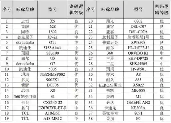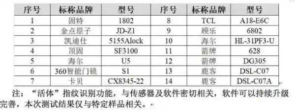 部分門鎖樣品密碼設置表現優異