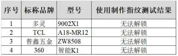 只有4個樣品使用制作指紋測試無法解鎖,安全性較好。