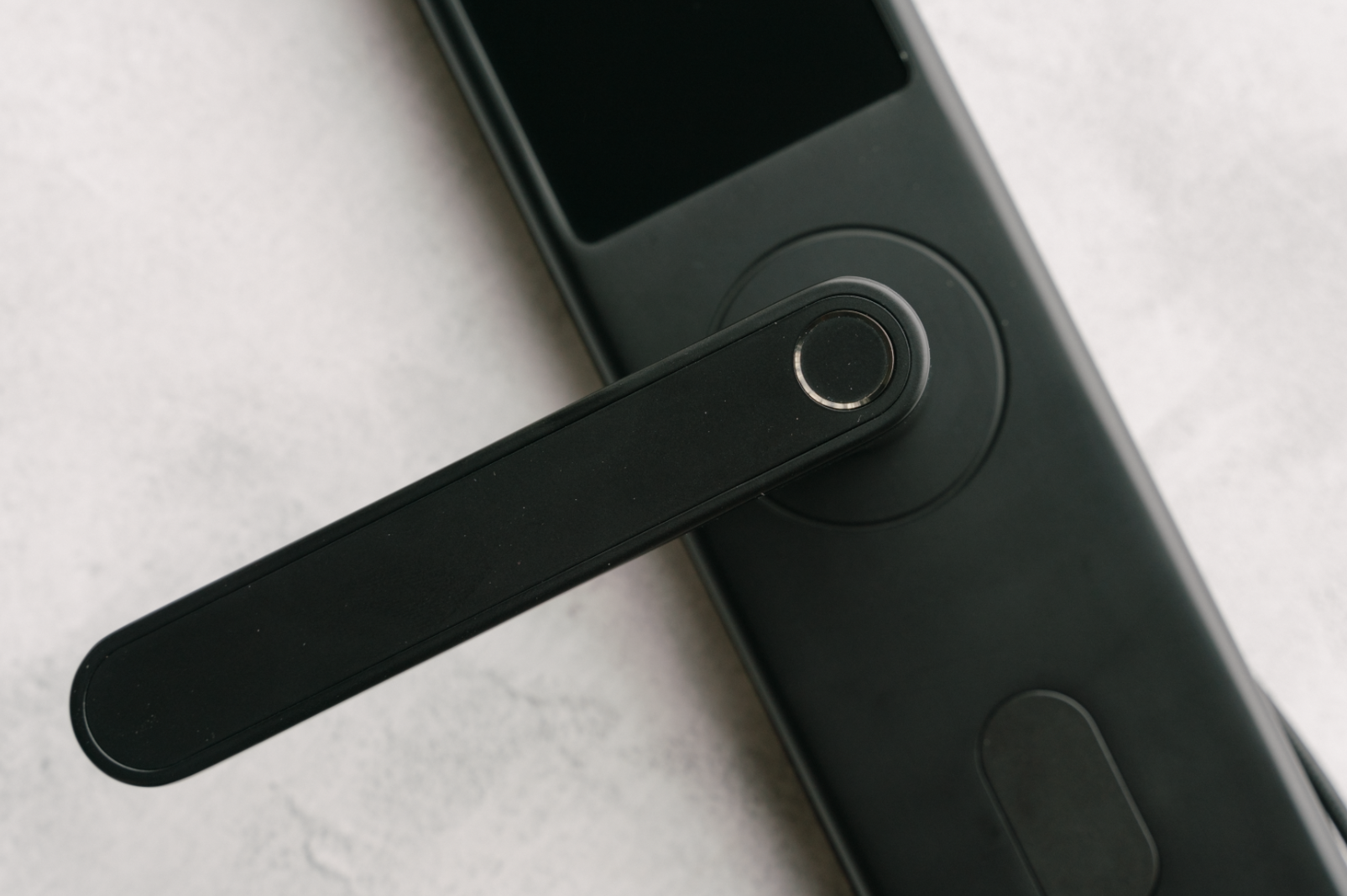 下層則為智能鎖本體了,OJJ本身就為設計師品牌,顏值相當可以,純黑色的面板設計,通體啞光噴漆設計。它的主體材料為鋁合金材質,堅固耐用,并且據官方的說法,它可以經受住96小時鹽霧實驗,即使在沿海地區,外觀也絕不氧化,實驗室中的數據它可以抵御-25℃到55℃極寒極高溫考驗。而門把手采用了耐用的德國雙軸承結構,十年手把不會下垂,在品質上值得信賴。