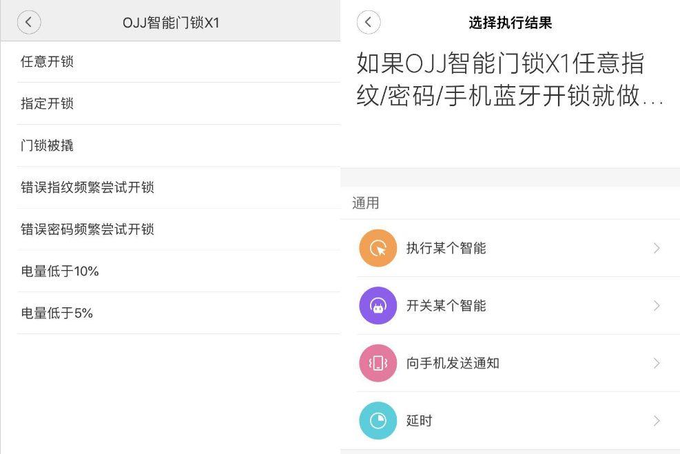 智能鎖接入米家還有一個好處在于,可以使用智能鎖與家中的智能設備進行聯動,如當打開指紋鎖時,門廳燈同時亮起,空氣凈化器打開等等操作。